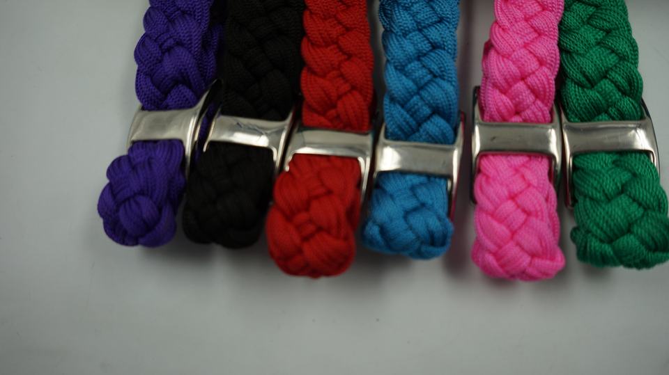 Rênes de cheval solides en polyester de qualité supérieure tressées personnalisées avec boucle stron Conway et mousqueton en option.