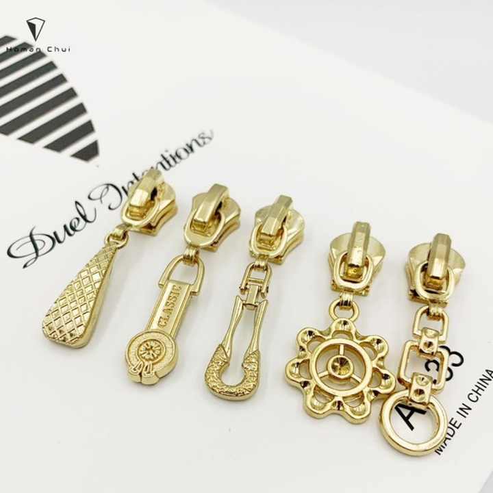 Tirette de fermeture éclair en métal personnalisée avec logo de marque en relief et curseur pour sacs/vêtements