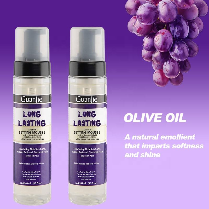 Mousse à l'huile d'olive de marque personnalisée mousse à tenue forte et longue durée pour les cheveux marque privée parfumée coiffage bouclés perruque mousse tressée