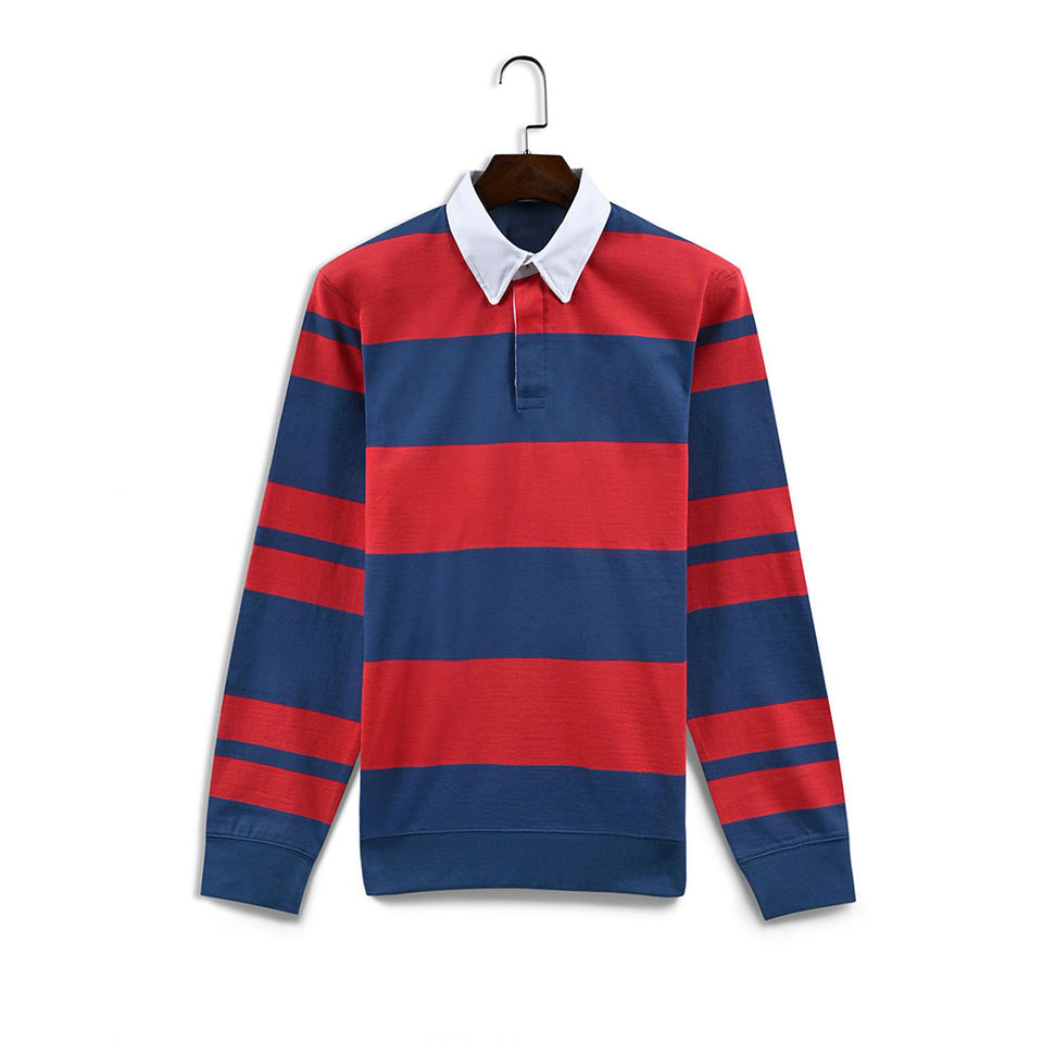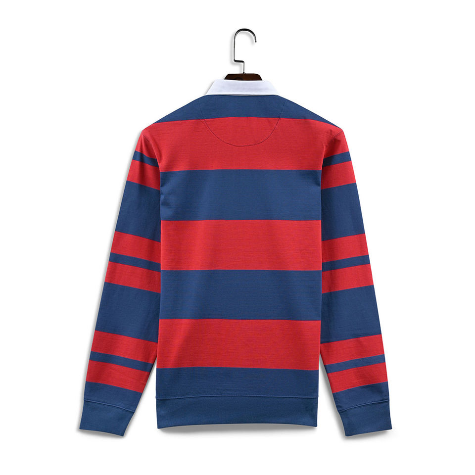 Chemise de rugby personnalisée respirante à séchage rapide, coupe ajustée, manches longues, col rabattu, design vintage universitaire, haute qualité