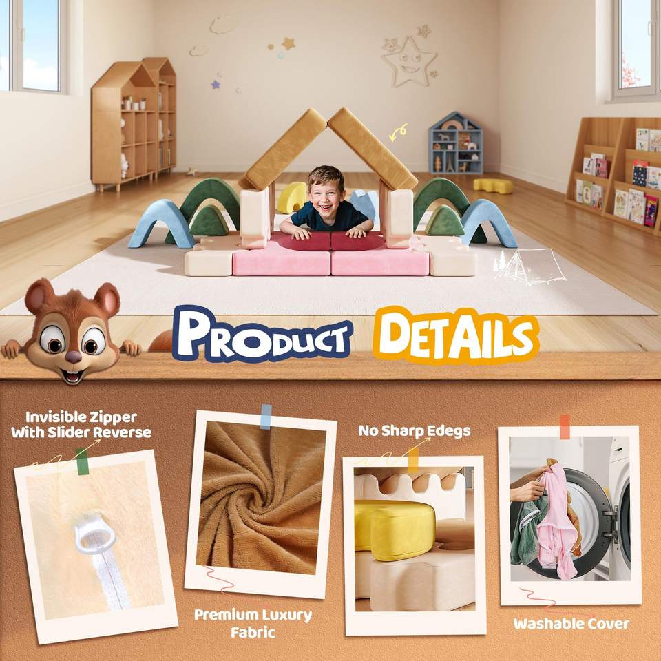 Canapé modulaire en blocs de construction personnalisés pour enfants, mousse haute densité, tabouret de jeu modulaire avec accoudoirs, pour les enfants de 2 à 4 ans
