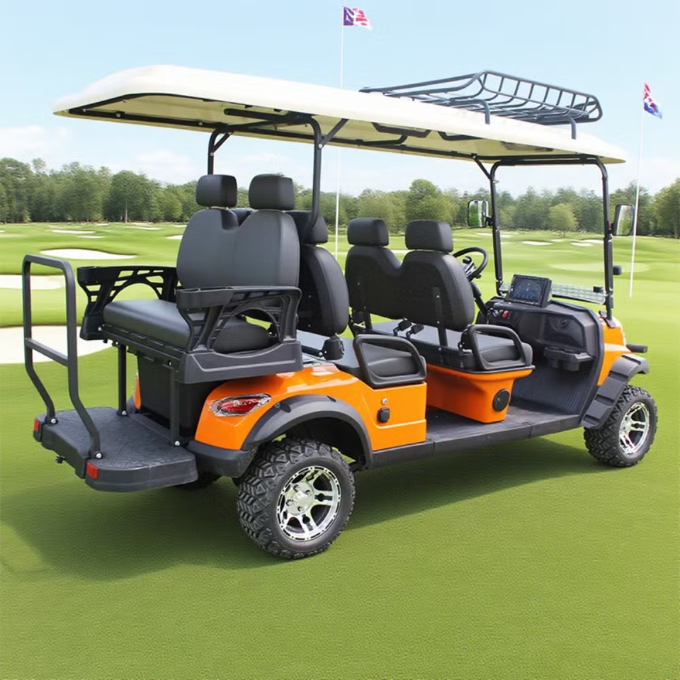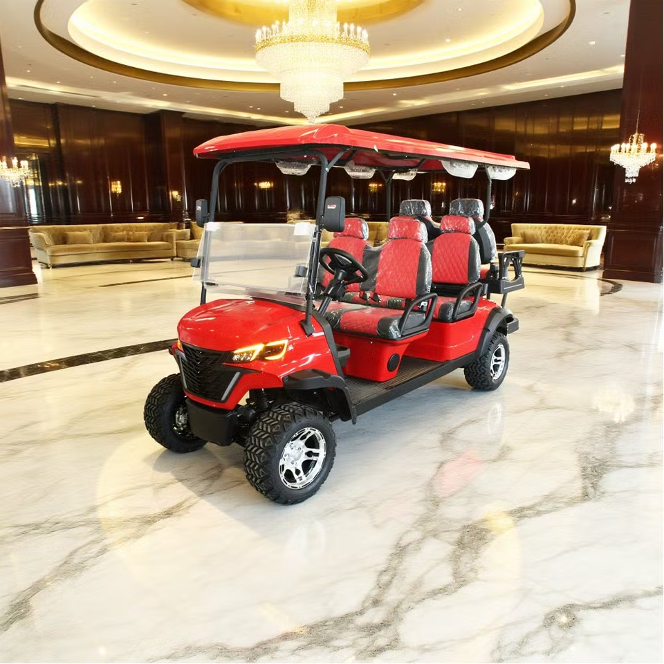 Voiture de golf électrique 48V certifiée CE personnalisée, conduite à droite, 5-6 passagers, homologuée pour la route, vitesse de 70 km/h, autonomie de 50-70 km, capacité de montée de 25 degrés