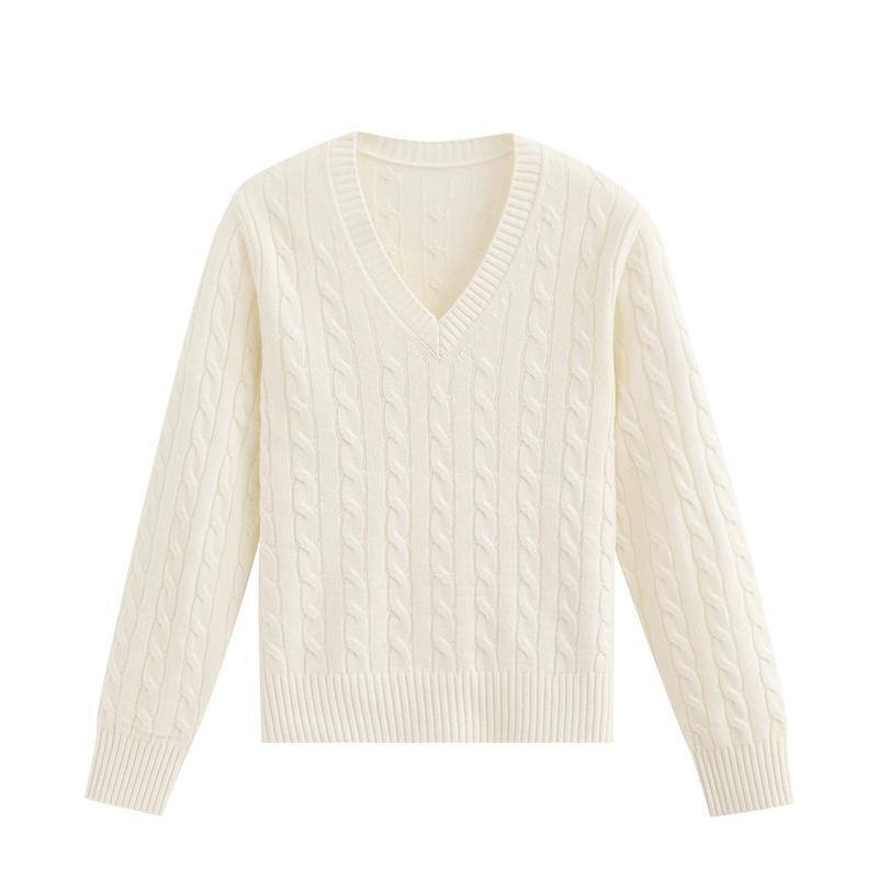 Pull en tricot torsadé personnalisé à col en V pour femme, décontracté, hiver, 100% laine, pour la vente en gros