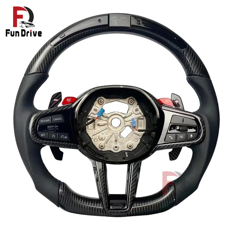 Volant en fibre de carbone personnalisé pour BMW G20 G30 G21G32 G12 G28 G06F10 F30 Série X Volant de direction de mise à niveau en forme de D