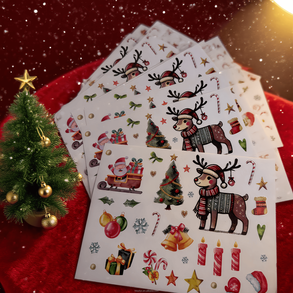 Autocollants personnalisés de vacances de Noël de dessin animé matériau PET imperméable pour adolescents enfants pour cadres photo décoratifs artisanat