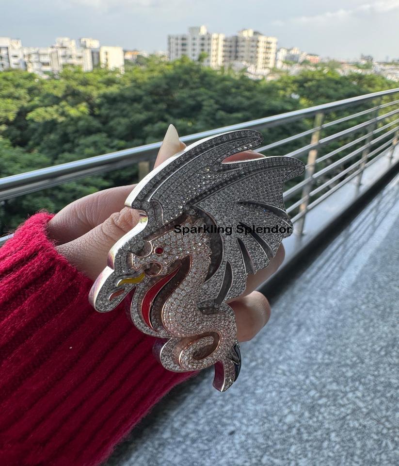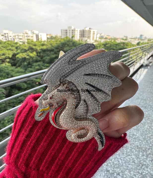 Dragon de dessin animé personnalisé entièrement glacé Hip Hop pendentif rond brillant Moissanite diamants bijoux fins pendentifs et breloques