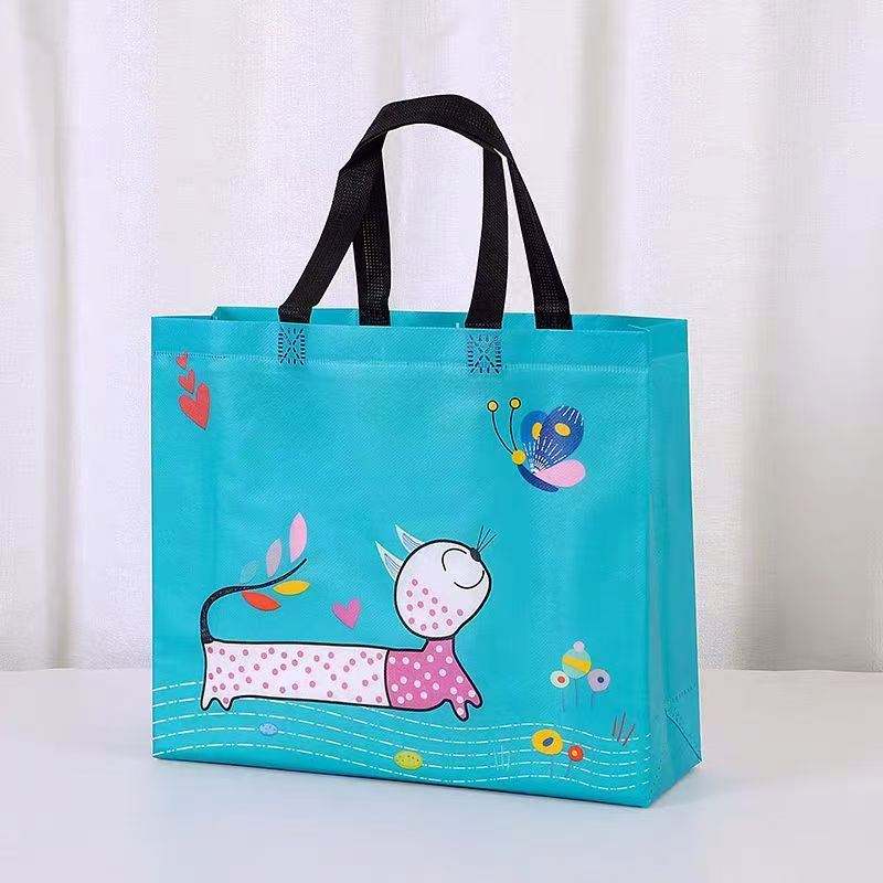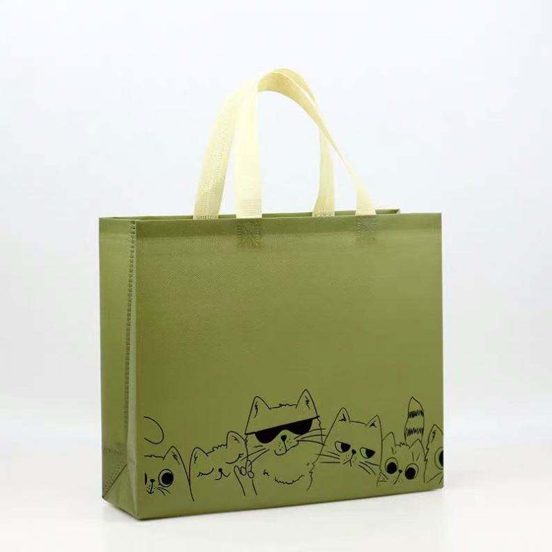 Sacs à main de supermarché pliables réutilisables en tissu non tissé imprimés avec un chat de dessin animé personnalisé