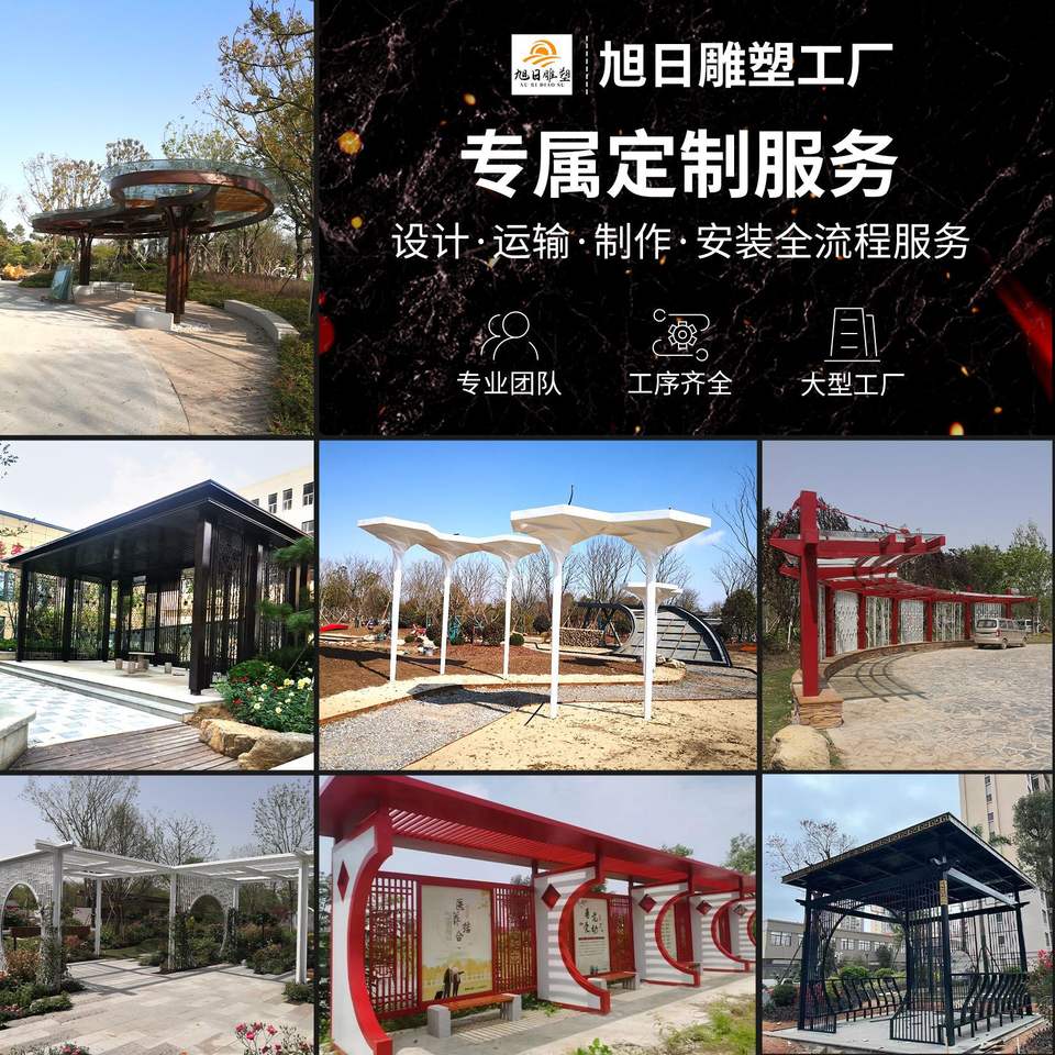 Pavillon paysager en acier inoxydable gravé sur mesure pour parcs, zones résidentielles, sites touristiques, abri solaire extérieur - Sunrise