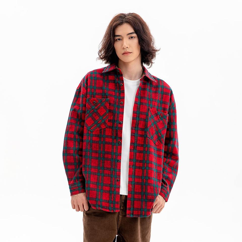 Chemise à carreaux à manches longues décontractée personnalisée 75% coton 20% polyester