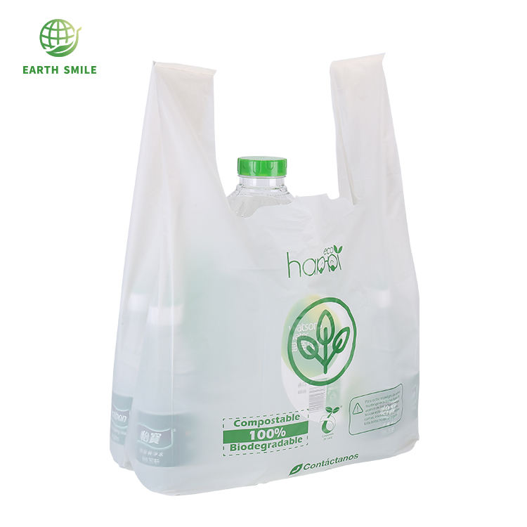 Sacs à provisions compostables biodégradables écologiques certifiés personnalisés en plastique de T-shirt avec poignées