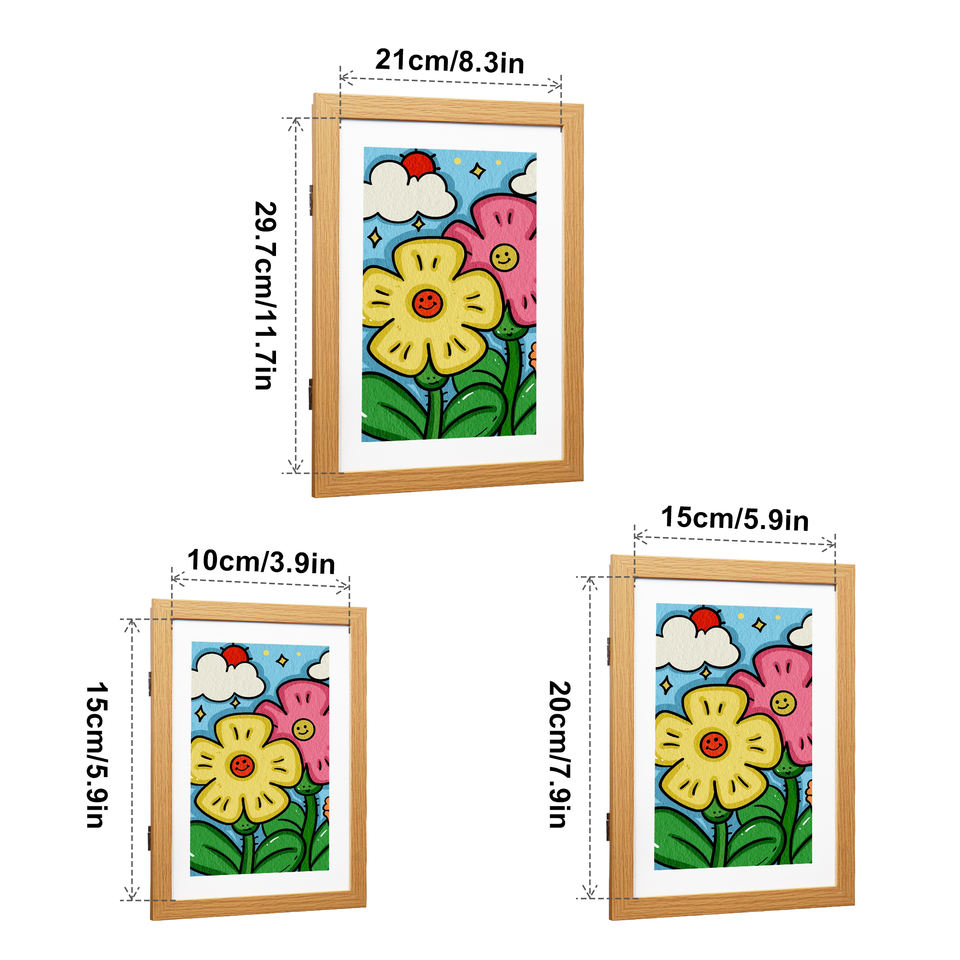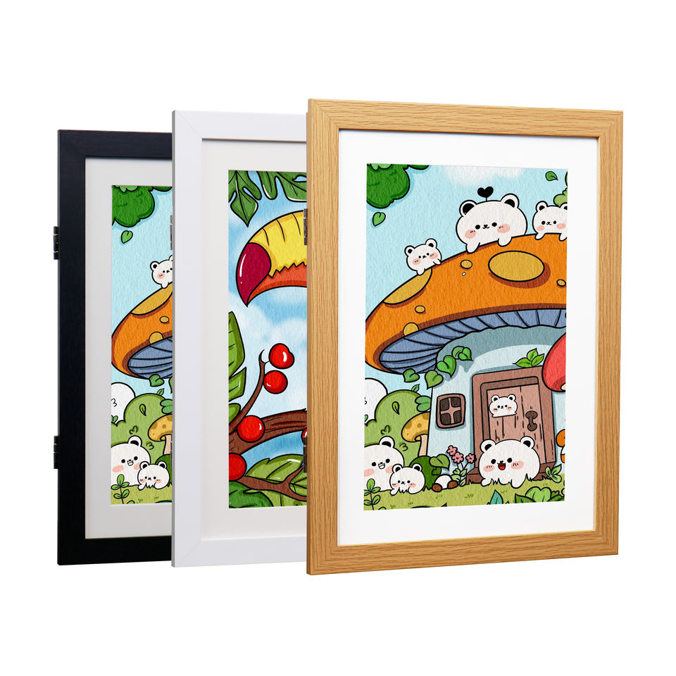 Cadre d'affichage de photo d'image d'ouverture magnétique d'aimant en bois modifiable personnalisé pour des enfants pour montrer des dessins et des illustrations d'enfants