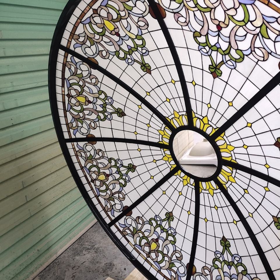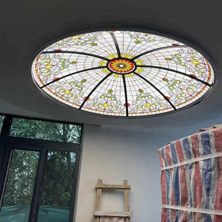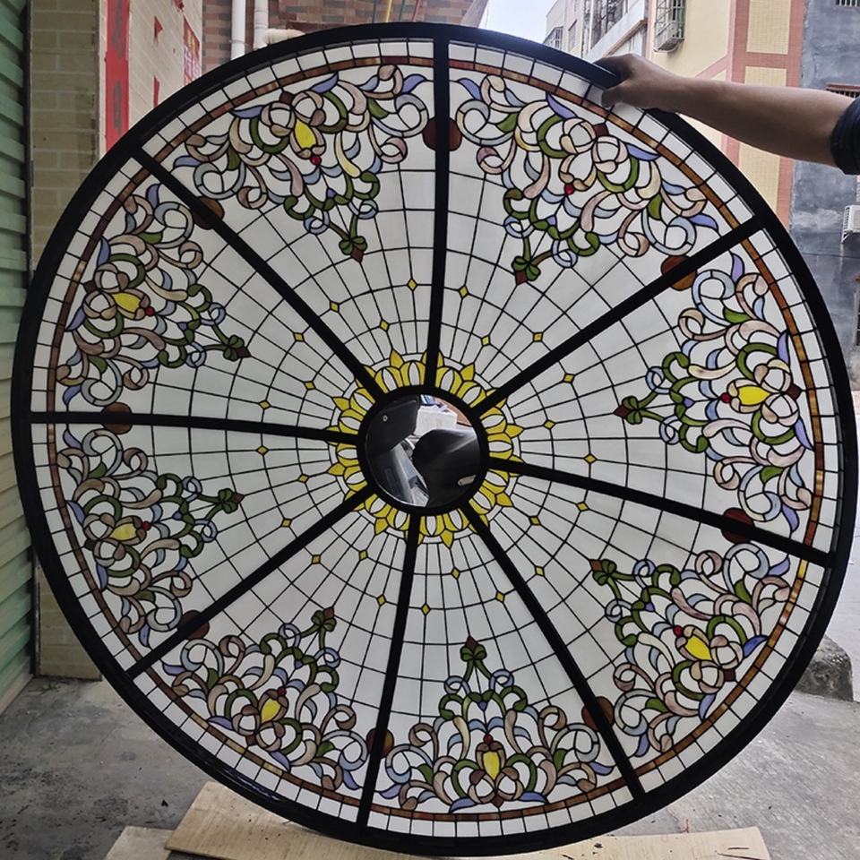 Dôme Tiffany en verre teinté avec structure en fer, personnalisé, pour intérieur (bar, hall, villa, hôtel, église), fourni par une usine chinoise
