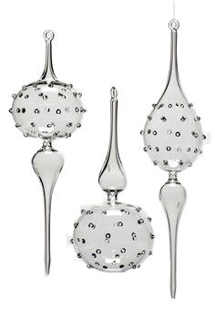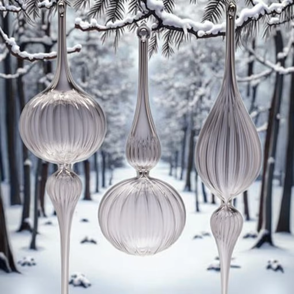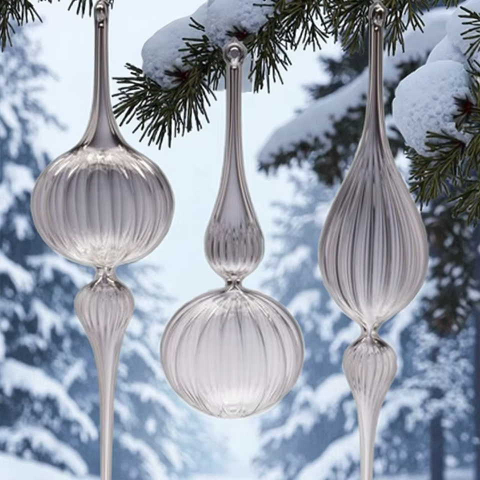 Ornement de Noël personnalisé en verre soufflé à la main, motifs variés, gouttes d'eau décoratives, avec crochet en verre transparent