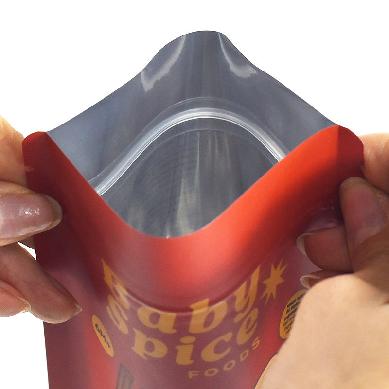 Sachets refermables personnalisés transparents avec fermeture éclair, sacs d'emballage réutilisables pour aliments pour bébés et épices, sachets Mylar 50g