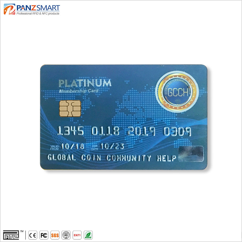 Carte plastique PVC personnalisée avec numéro gravé, bande magnétique et puce RFID intelligente
