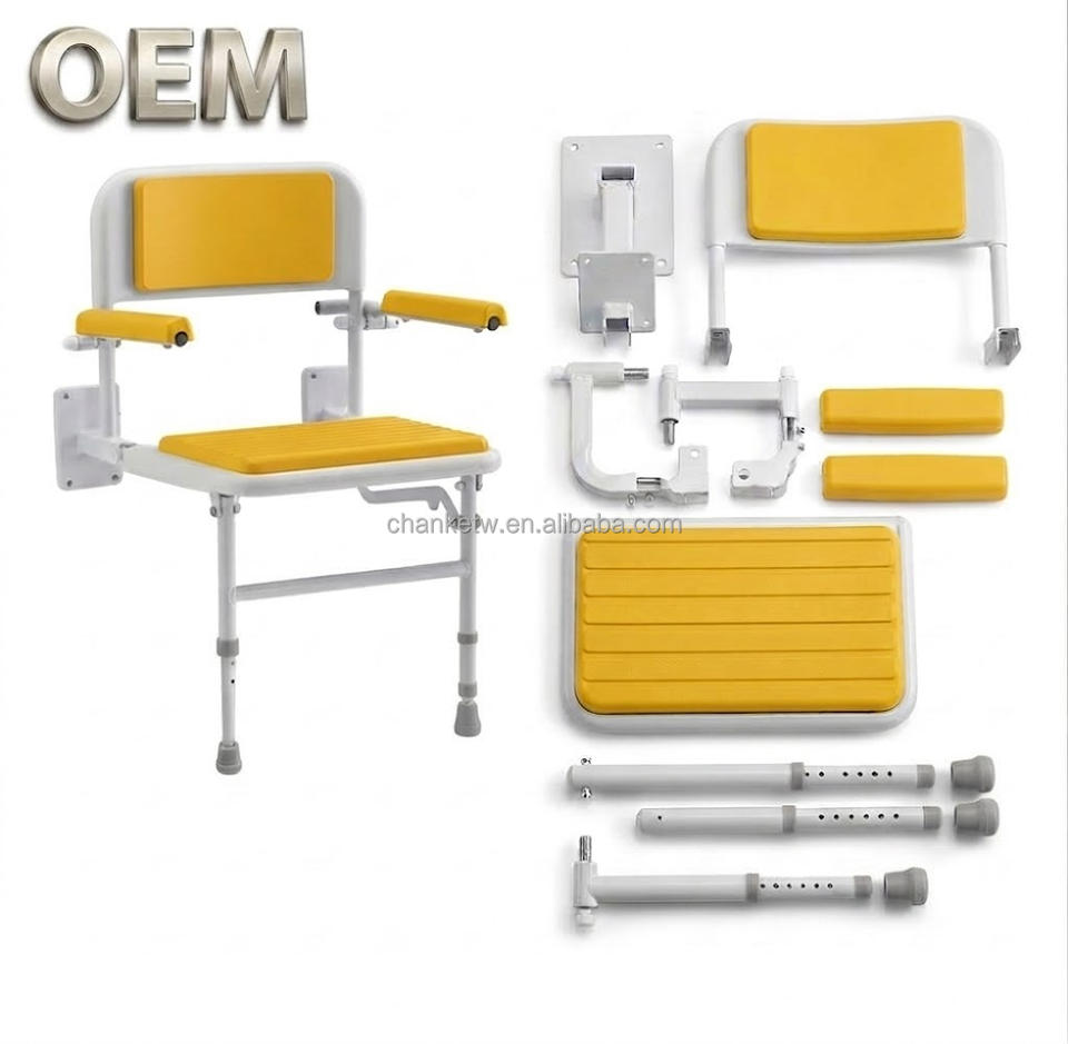 Équipement de sécurité pour salle de bain OEM/ODM Taïwan, siège de douche pliable en alliage d'aluminium avec accoudoirs, capacité de charge 250 kg