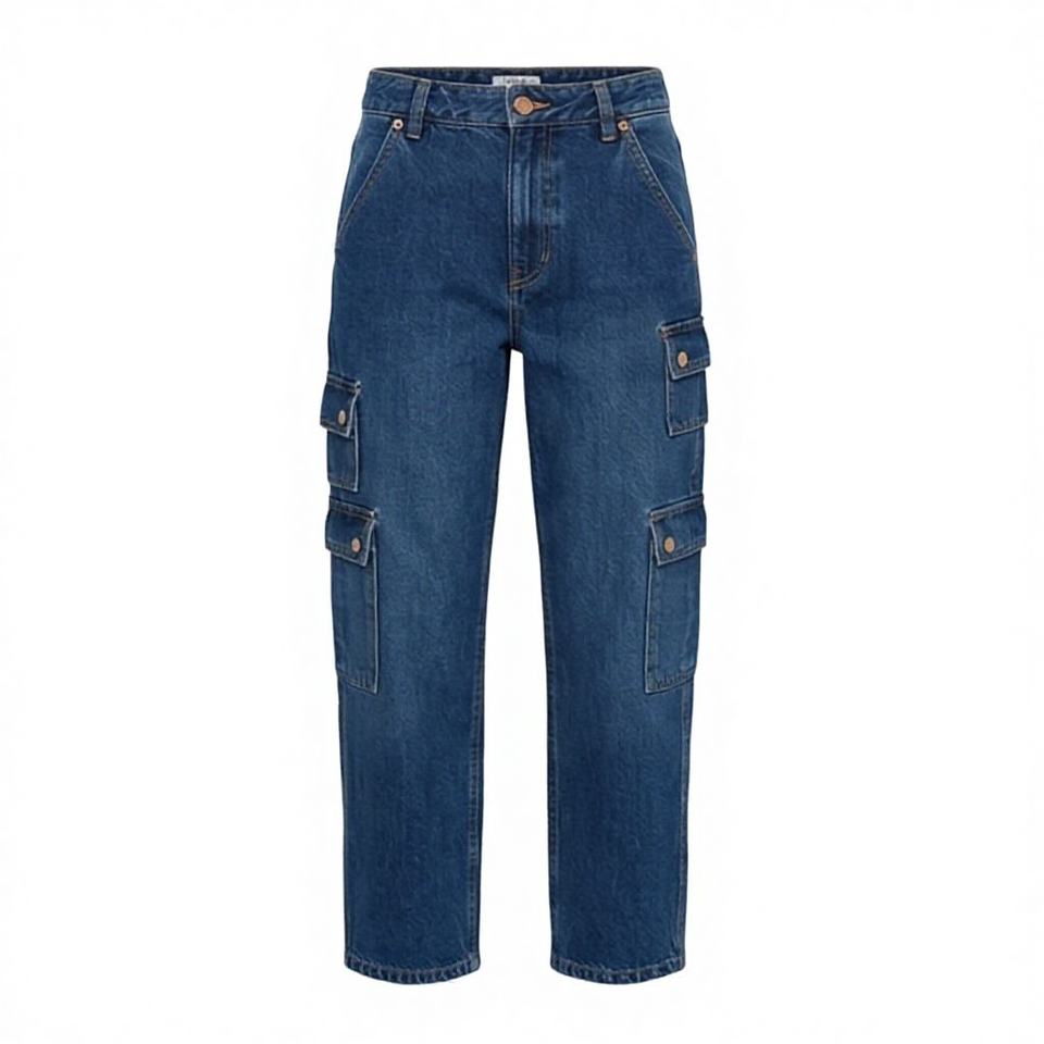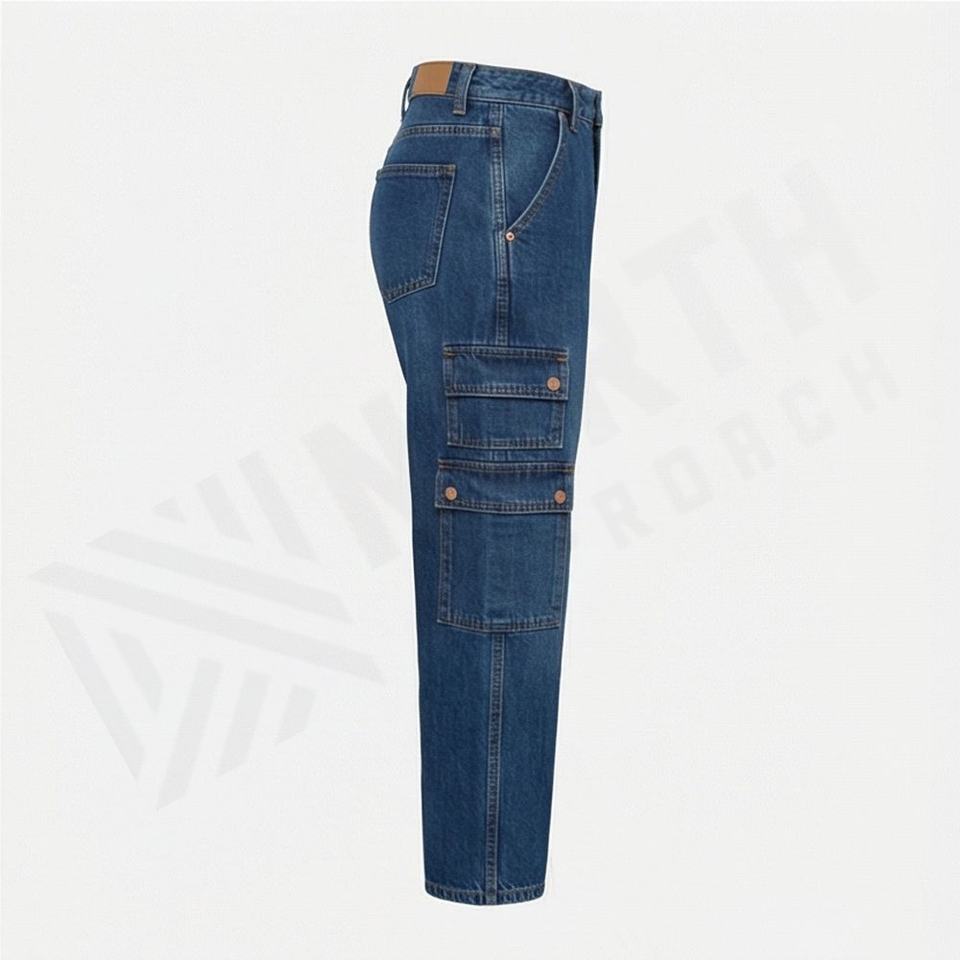 Jean cargo unisexe en denim couleur personnalisée, coupe droite, taille mi-haute, décontracté, respirant, séchage rapide, en coton, style streetwear pour femme
