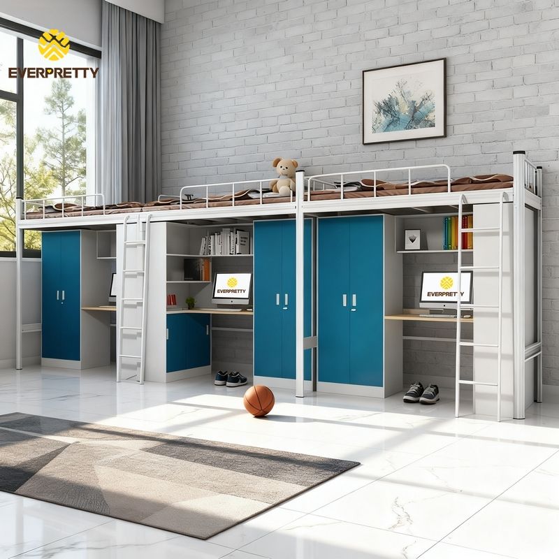 Lit superposé triple moderne pour étudiants avec casier et armoire, couleur personnalisée, pour appartement, dortoir, école, pour 3 personnes