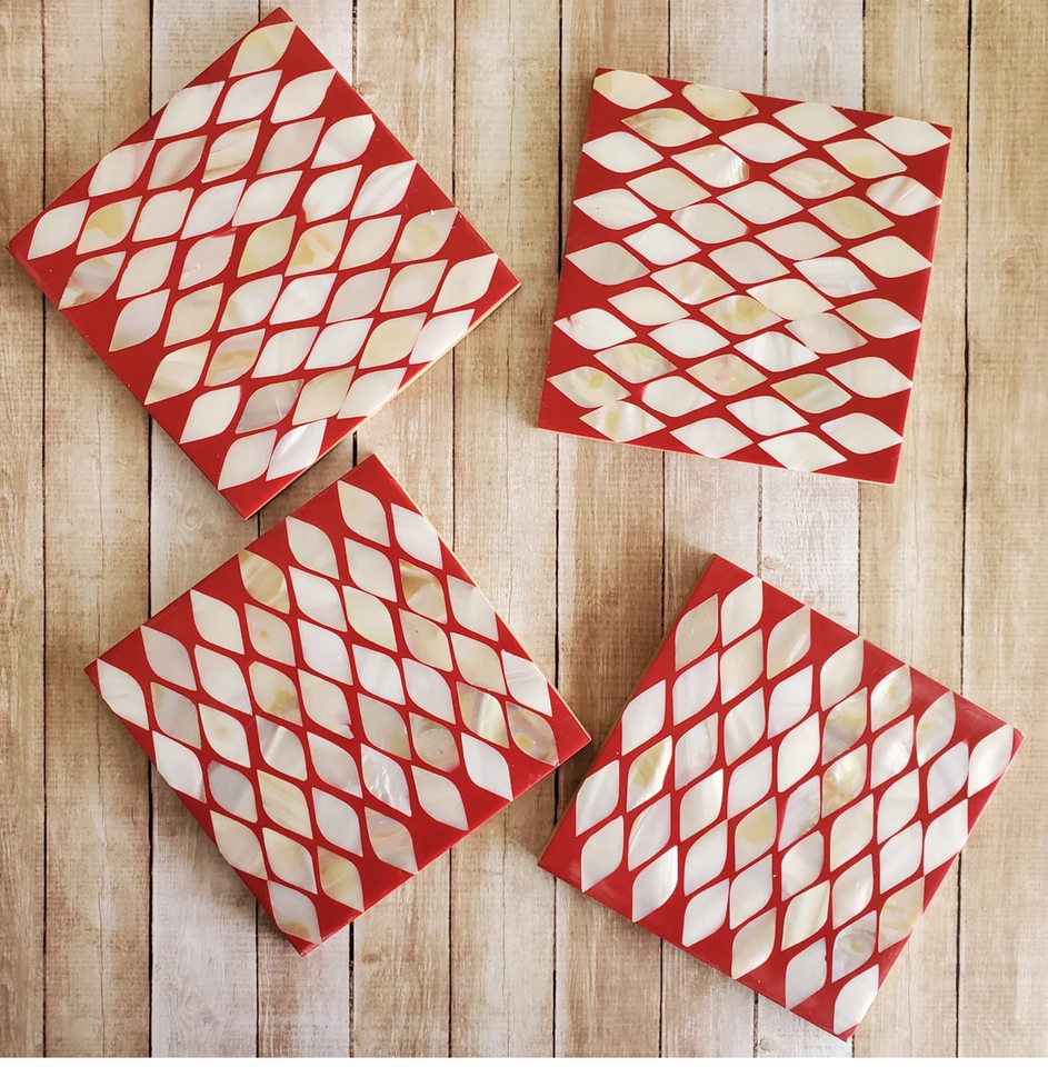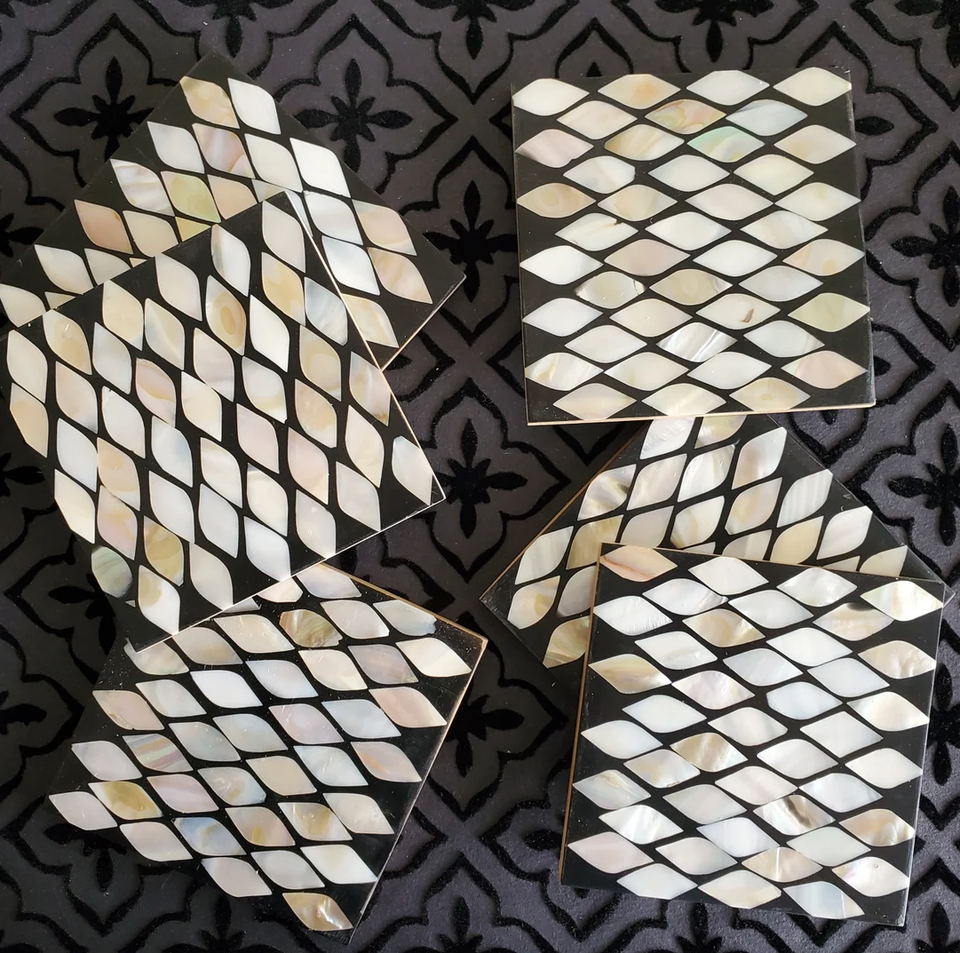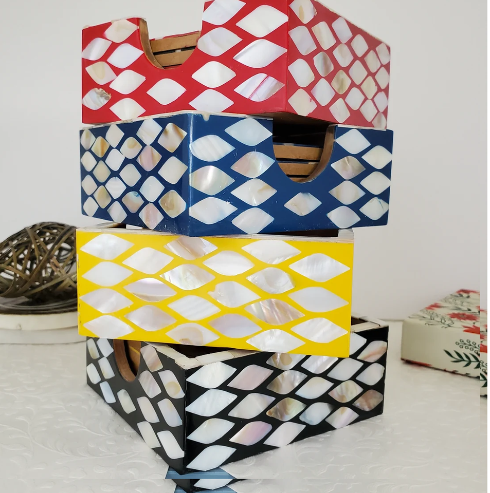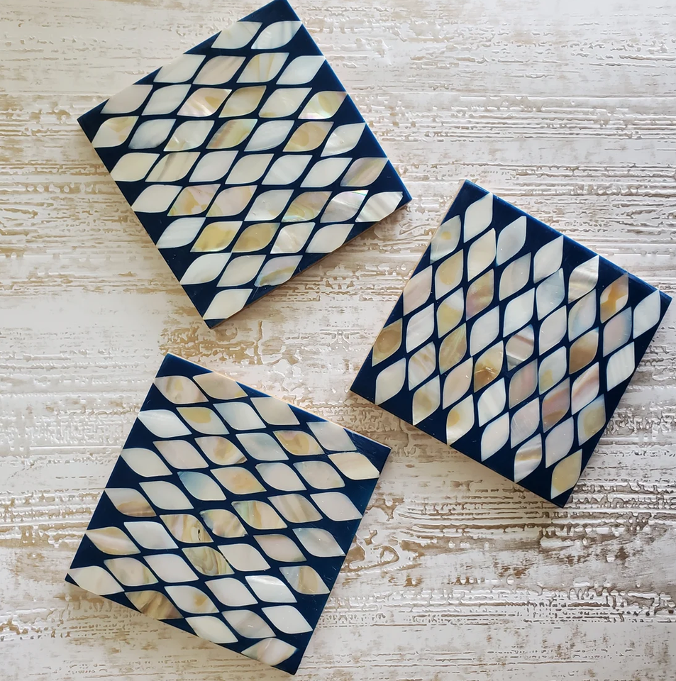 Ensemble de dessous-de-verre carrés minimalistes écologiques avec incrustation de nacre couleur personnalisée, support, tapis de table pour café et thé, livraison rapide