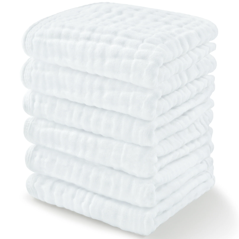 Lot de 6 lingettes lavables en mousseline de coton biologique à six couches personnalisées pour bébé – Motif uni blanc avec impression blanchie