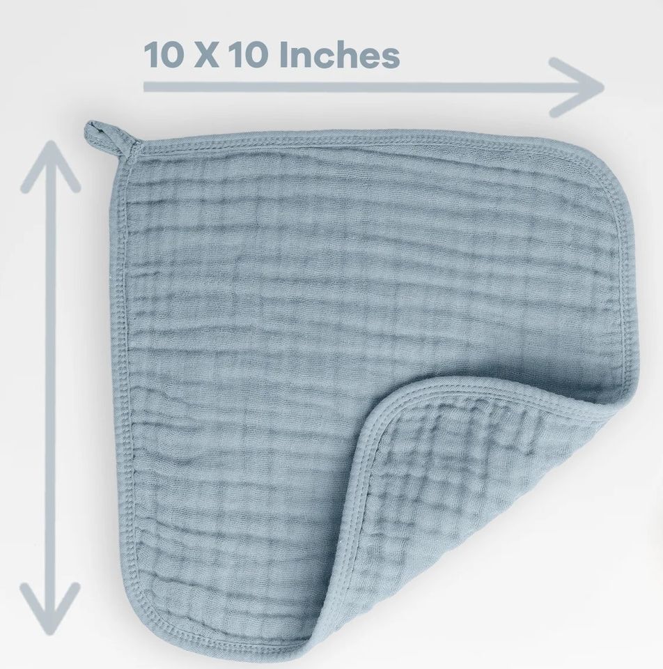 Gant de toilette en mousseline de coton biologique à six couches personnalisé pour bébé Lot de 6-Impression couleur bleu acier