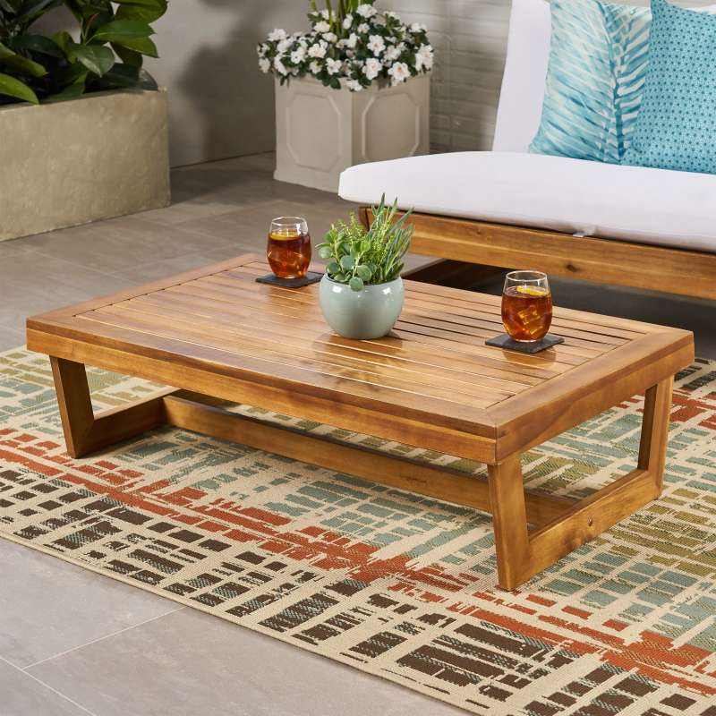 Table basse en bois de teck massif de couleur personnalisée en forme de rectangle Design moderne pour la maison et la cour Meubles de salon
