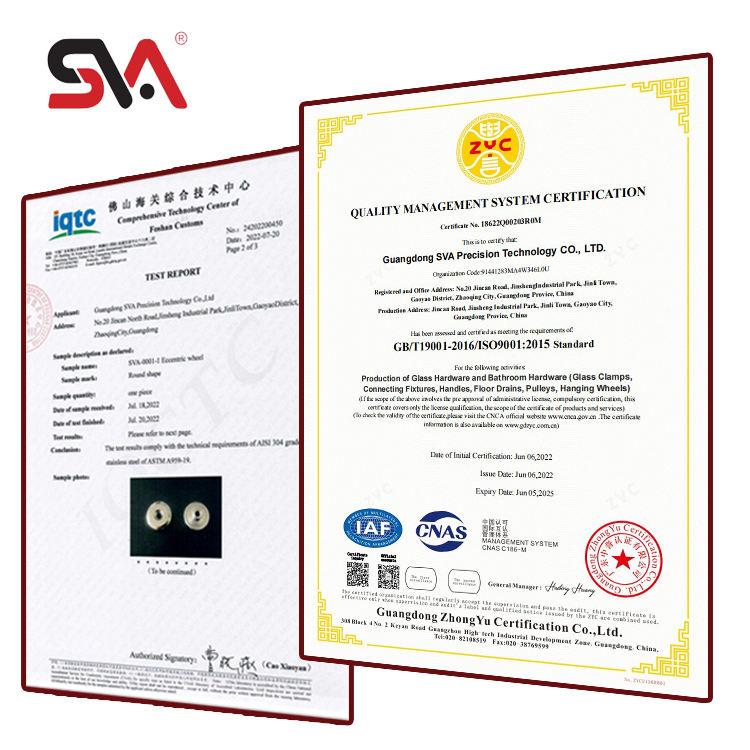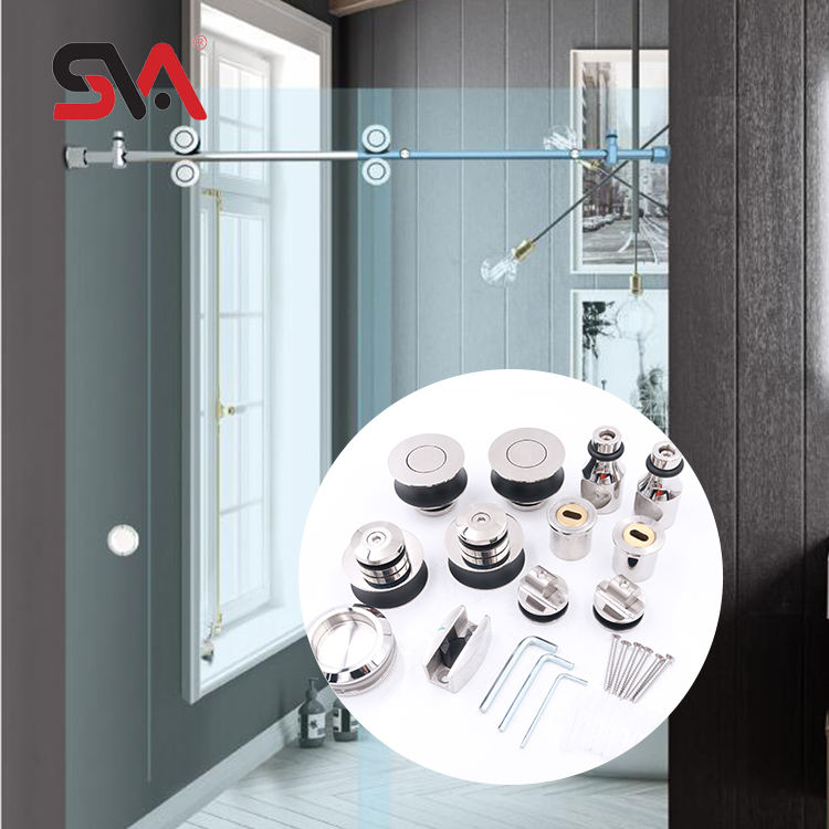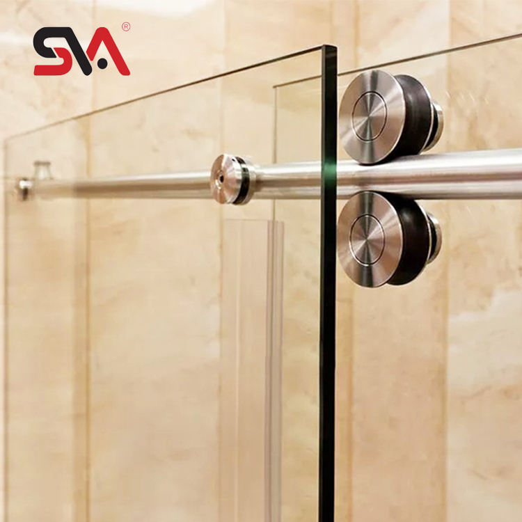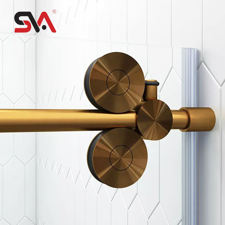 Système de porte de douche coulissante en acier inoxydable à quatre roues, tube rond, couleur personnalisée SVA-0029B, accessoires en verre trempé