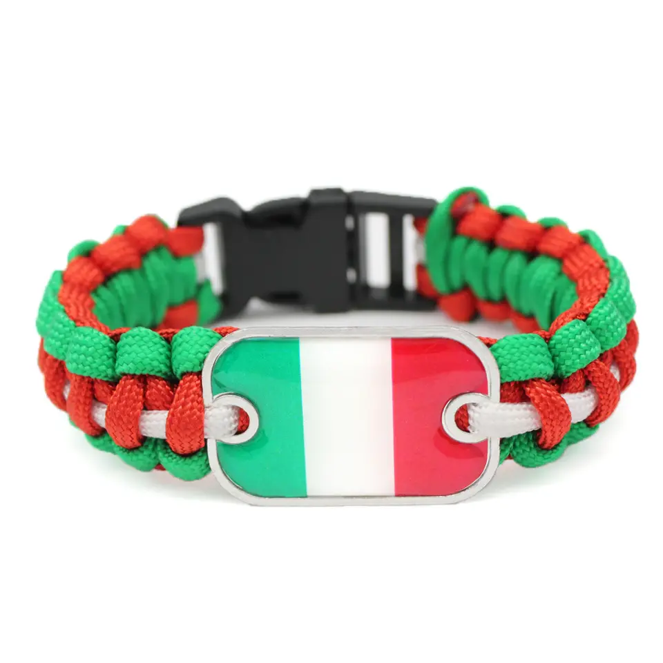 Couleur et logo personnalisés Seven-Core Survival Italie Drapeau Bracelet tissé Cordon de parachute de sauvetage Drapeau Wrap Bijoux de mode