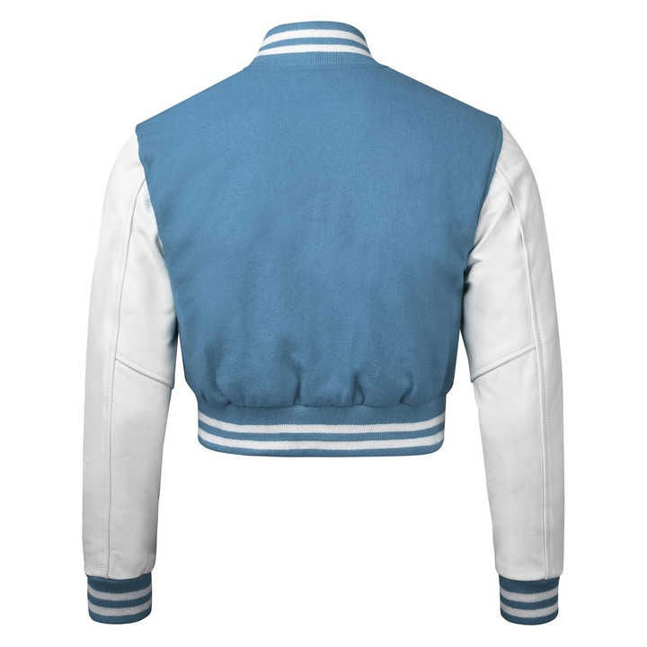 Couleurs et tailles personnalisées disponibles Manches en cuir Vestes varsity courtes pour femmes Vestes varsity courtes pour femmes sur mesure