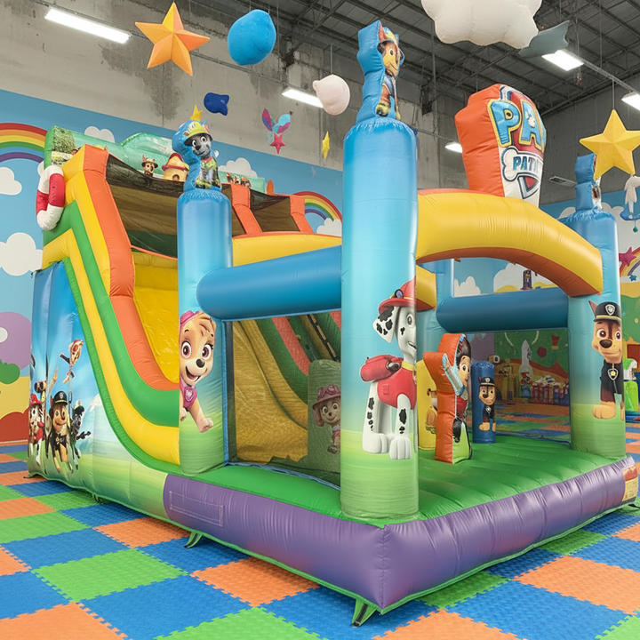 Château gonflable combiné avec toboggan sur le thème des chiens de dessin animé, qualité commerciale, personnalisable, pour enfants, à vendre