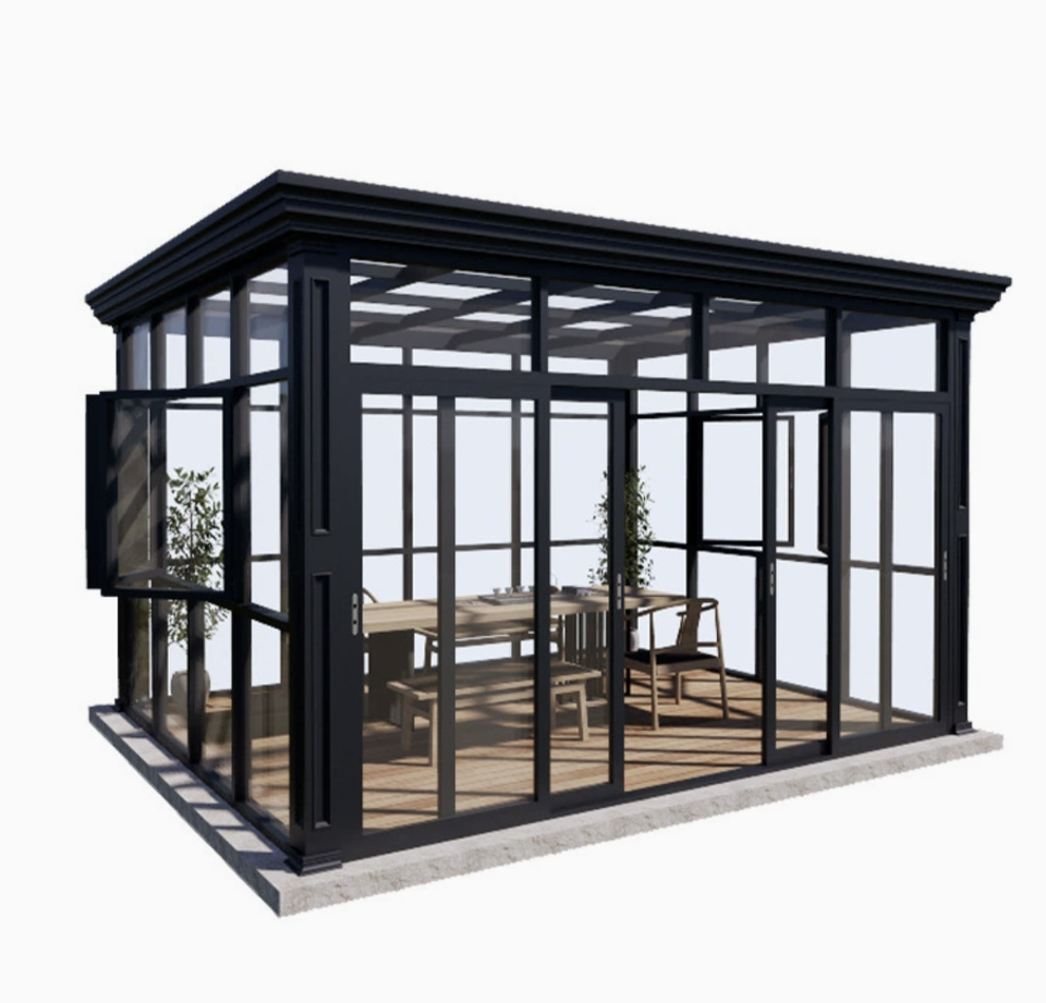 Véranda contemporaine en verre feuilleté sur mesure pour cour résidentielle, villa, patio, jardin d'hiver et solarium