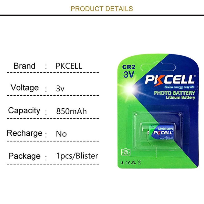 Type de batterie:Pila Bateria 123 Cr2 123 Cr123a 17345 Cr17345 De Litio Pkcell