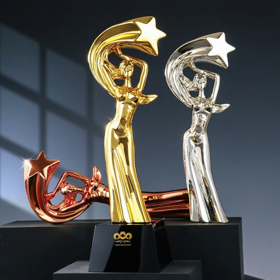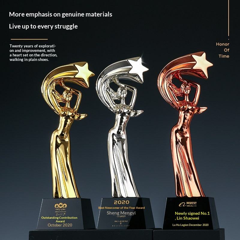 Trophée personnalisé créatif en forme de déesse étoilée, petite figurine dorée, récompense commémorative pour bonne épouse, mari, beauté, tatouage, cristal doré