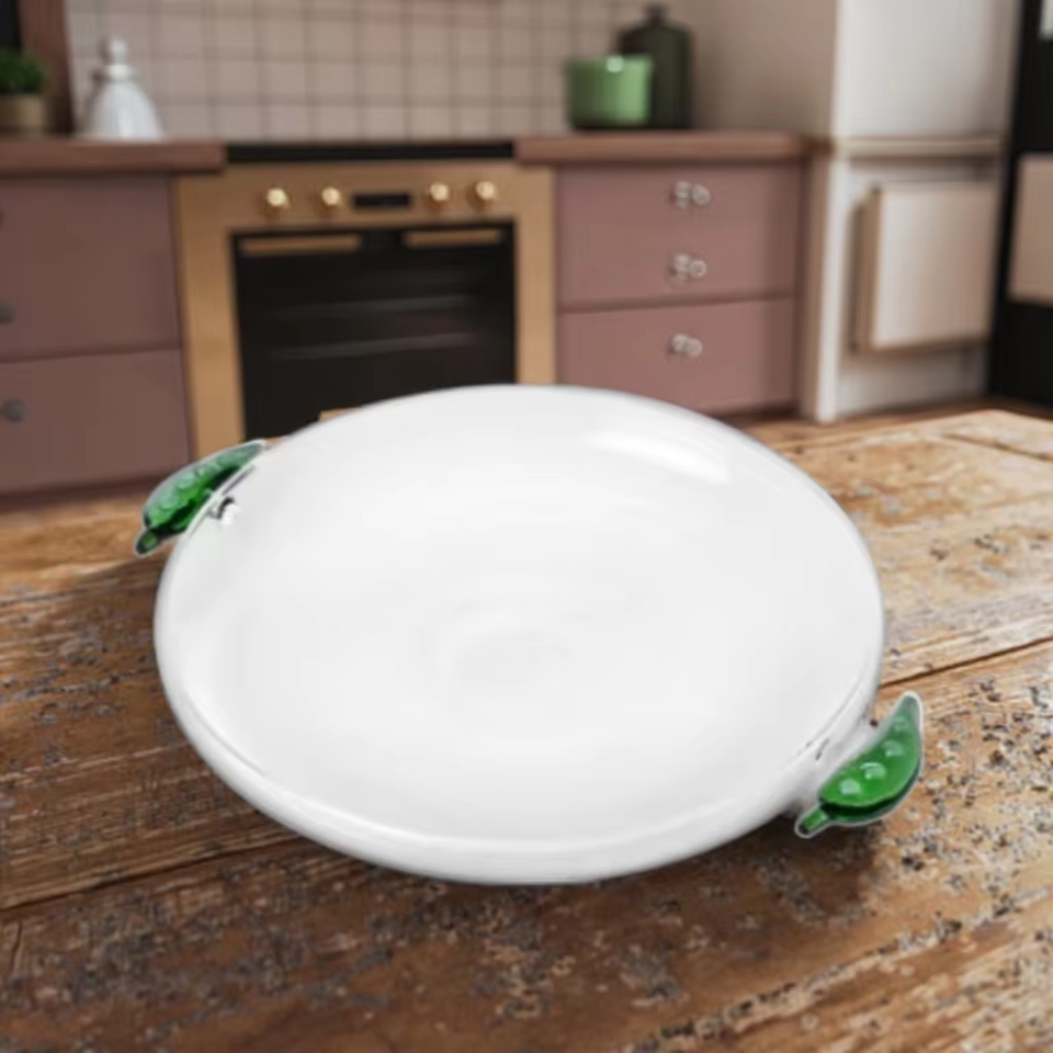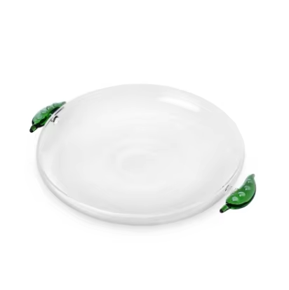 Assiette en verre de pois verts créatifs personnalisés avec poignée d'angle minimaliste vente en gros pour la rentrée des classes