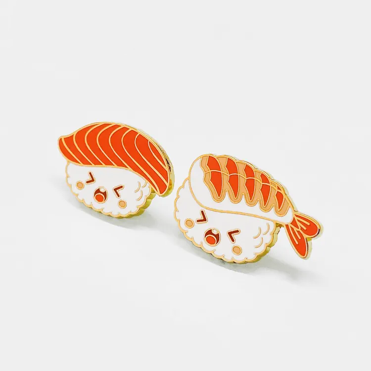 Personnalisé créatif japonais délicieux nourriture traditionnelle saumon Sushi et crevettes Sushi fer plaqué or émail doux broche en métal