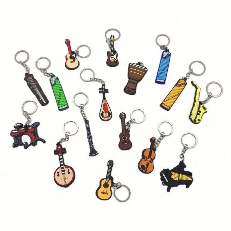 Porte-clés en silicone personnalisé, instrument de musique créatif, guitare, saxophone, piano, comme accessoires pour clés