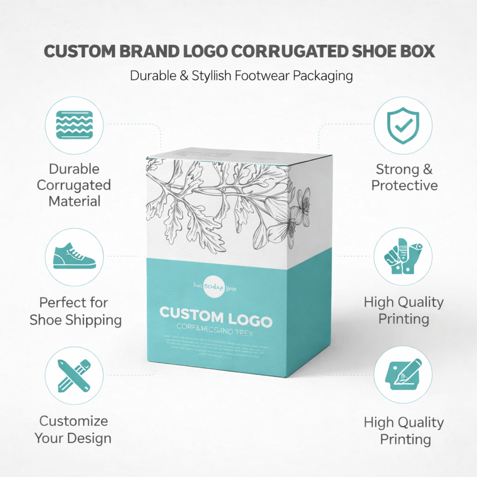 Boîte à chaussures en carton ondulé avec logo de marque personnalisé | Boîte d'emballage en papier imprimé pour l'expédition et la vente au détail de chaussures | Emballage de chaussures personnalisé durable