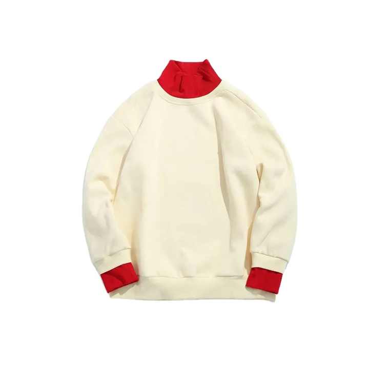 Customized Cut and sew ribbed edge fleece sweatshirt Beige mock neck Hoodies