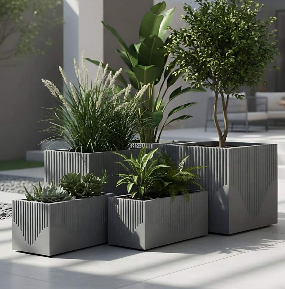 Jardinière d'extérieur carrée en aluminium, grande, contemporaine, de luxe, personnalisée, avec revêtement PE, pour la vente aux États-Unis/l'Europe