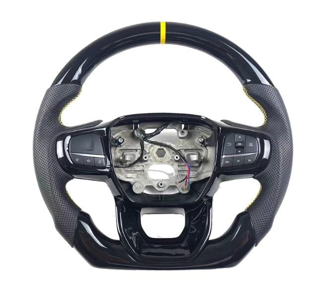 Volant personnalisé en fibre de carbone forgée bleu foncé avec poignées en microfibre pour Ford F-150 Raptor Shelby XL XLT 2021-2025