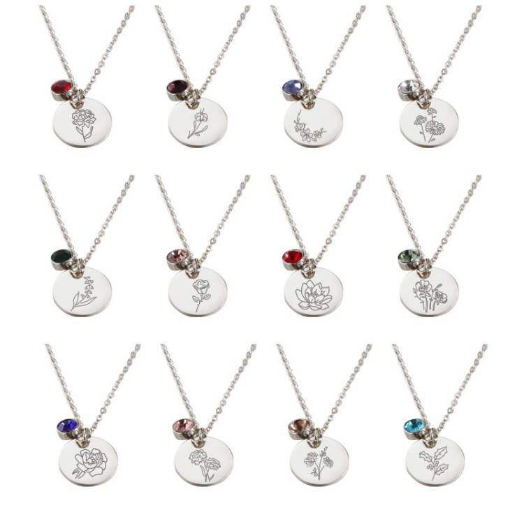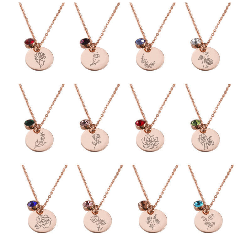 Personnalisé Décembre Naissance Fleur Circulaire Pendentif Coin Collier Personnalisé En Acier Inoxydable Bijoux pour Femmes Tendance