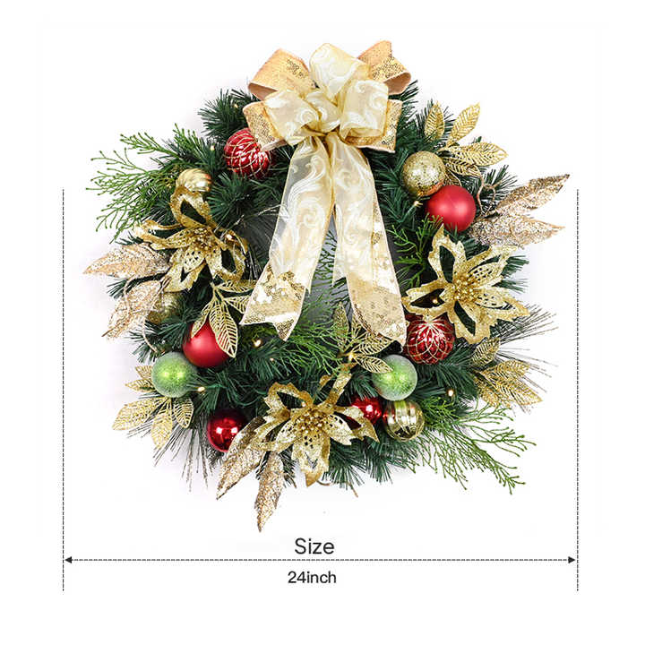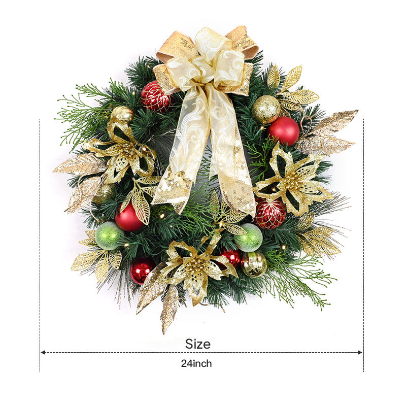 Décoration personnalisée Porte dorée Couronne de Noël suspendue Plantes artificielles vertes Couronne de Noël