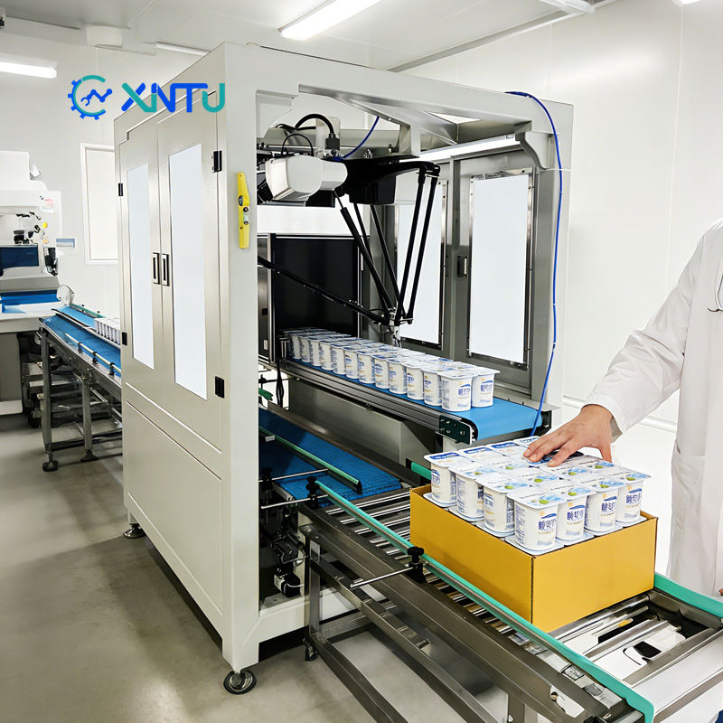 Machine d'emballage personnalisée pour boîtes en carton et fûts métalliques, avec robot Delta et bras araignée, automatique, de qualité alimentaire et flexible