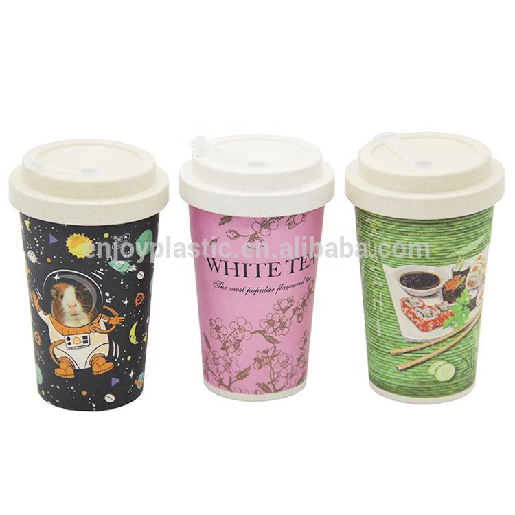 Conception personnalisée 350 ml Café à emporter Tasse de voyage à café en bambou avec couvercle en silicone et couvercle en bambou en option