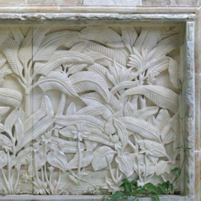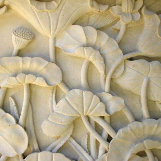 Sculpture en relief en pierre de Bali beige au design personnalisé, sculpture en pierre calcaire sculptée à la main, motif floral, design moderne, art mural pour la maison et l'hôtel