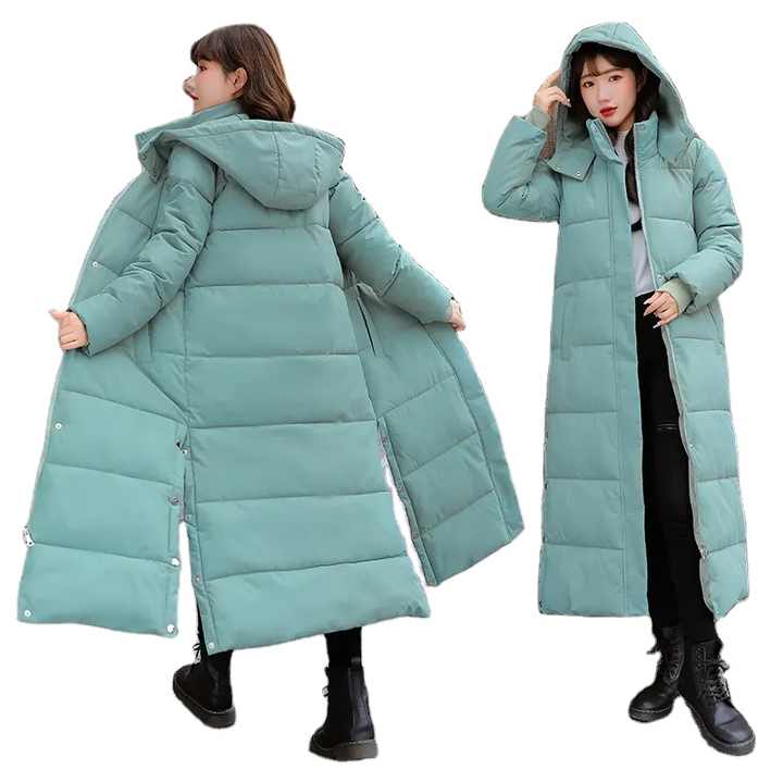 Long manteau à capuche respirant avec fermeture éclair imperméable pour l'hiver veste matelassée pour femmes au design personnalisé