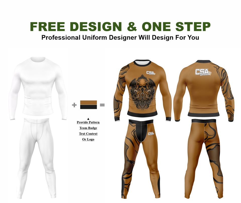 Ensemble de rashguard personnalisé imprimé numériquement pour BJJ, MMA et lutte, vente en gros directe d'usine, combinaison de compression respirante pour hommes