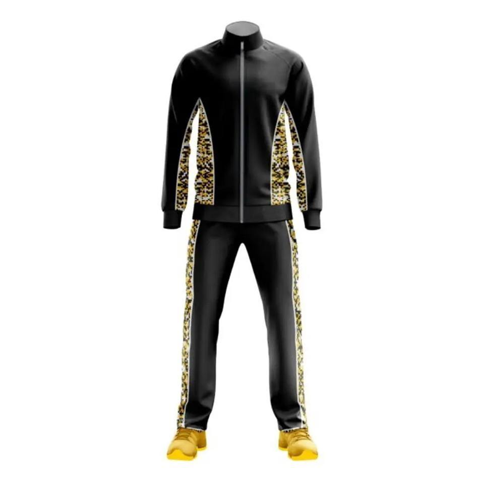 Survêtement 100% coton imprimé bouffant d'hiver pour hommes avec pantalon de jogging évasé empilé et ensemble de sweat à capuche