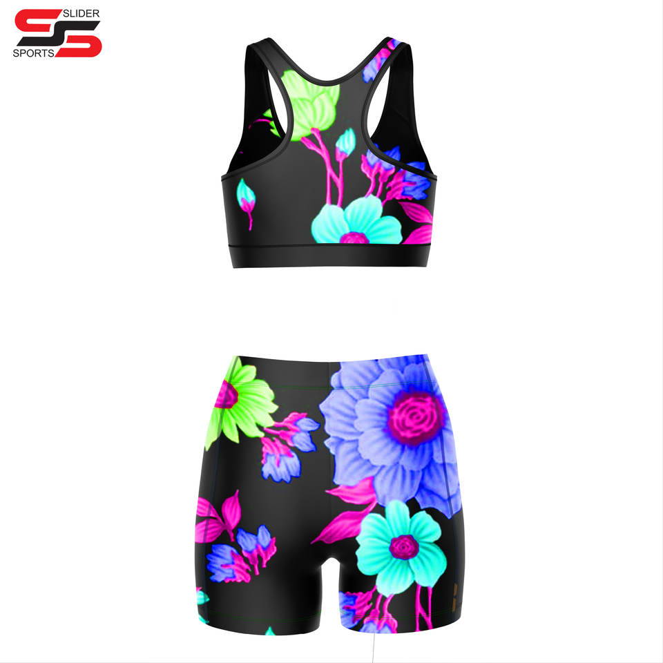 Soutien-gorge de yoga ajusté par sublimation au design personnalisé Short de nuit MMA dans un style unique et disponible dans toutes les conceptions