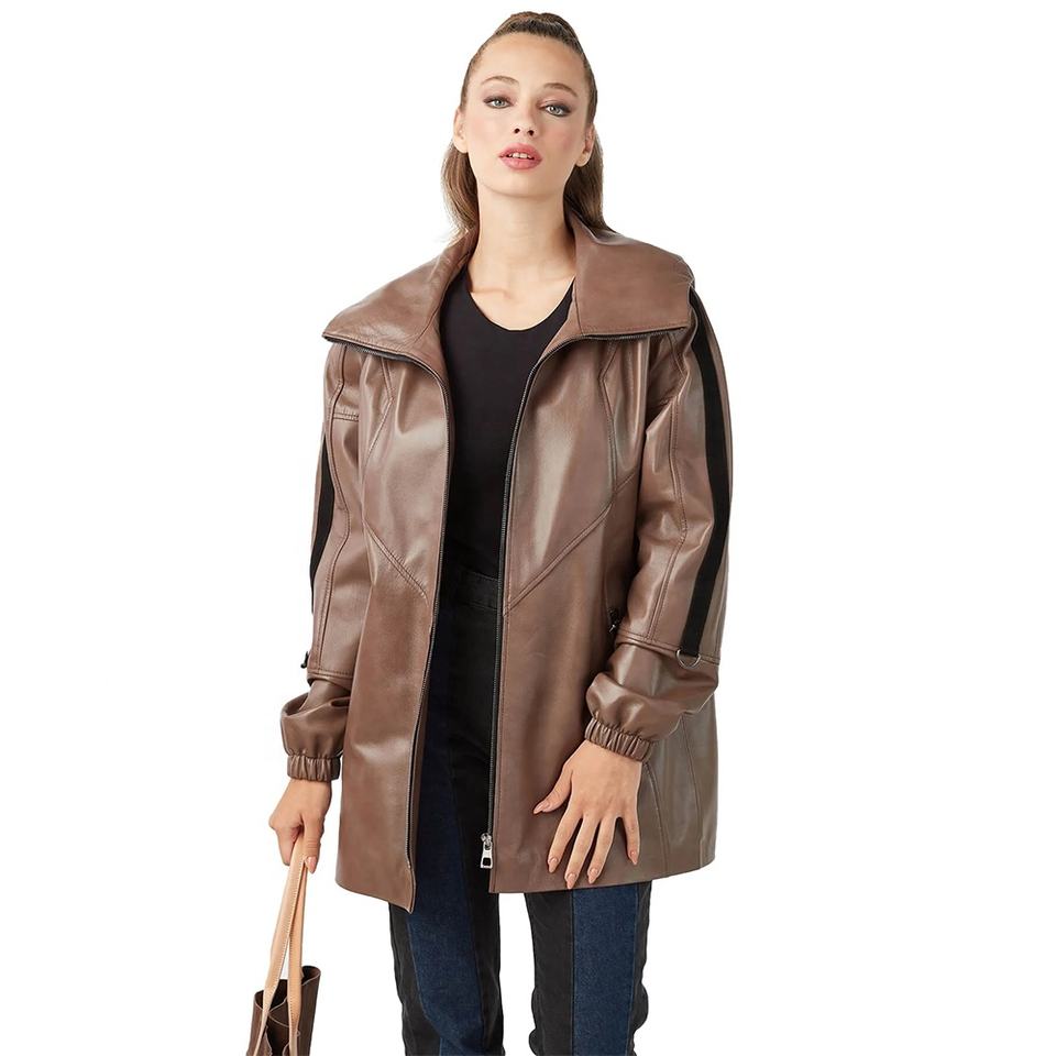 Manteau long en cuir de mouton décontracté de la meilleure qualité pour femmes conception personnalisée polyester imperméable soie grande taille approvisionnement ODM